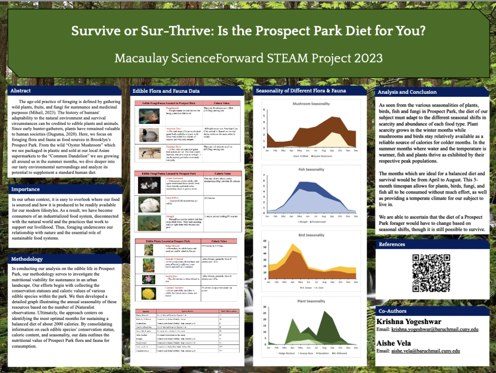 I love the focus on edible plants and animals! It makes me wonder what else could be grown in Prospect Park which could be foraged. Nice poster, Aishe and Krishna!